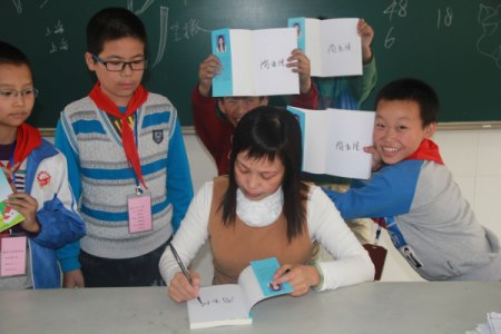 讲座完了就进行签名售书,学生们纷纷拿出自己的零花钱,买一本精神食粮回去好好地消化。更有许多学生是今天没有带钱但是也要买,结果尚玉洁就先把书给他们了,钱到下星期再收。