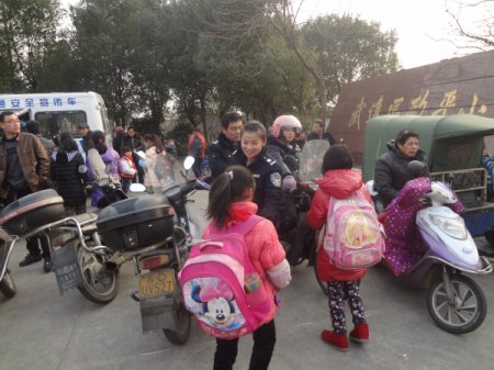 为了在全体学生及家长心目中树立起“生命第一,交通安全为先”的意识,1月21日下午3:00到4:30,前黄交警中队的民警开着交通安全宣传车来到了政平小学校门口,开始对学生及家长进行交通安全的教育。利用校门口的场地打开了宣传的视频,这些视频都是活生生的例子,而且有很多还是我们武进甚至是礼嘉的,一个个生命在不经意间就消失了,这一个个血的教训让家长看得“哎呀、哎呀”直叫唤,他们在为一个个生命的消失而感到惋惜。学校早放的一、二年级小朋友也在大人的陪伴下来到宣传车前观看视频,这些教训也深深地触动着幼小的心灵。下午4:00,三到六年级开始放学,交警中队的两位协警在校门口两侧发放“交通安全进万家”的宣传册,这宣传册上的内容非常丰富:有交通违法我抵制(红色)、车驾规定我知晓(蓝色)、事故应急我有招(绿色)、96122江苏公安交警服务热线等等内容。同学们走出校门都自觉地接过这宣传册并且及时打开观看,有的小朋友走出去了一段路又回过来拿这个宣传册,有许多同学都围到了宣传车前面观看视频,高年级的同学看这个视频就比较安静,他们在思考这一起起的人祸中到底是哪一方违反了交通法规。视频中一辆汽车通过十字路口,开到中间时左边突然冲出了一辆高速行驶的摩托车,结果摩托车撞倒了汽车上,摩托车驾驶员当场死亡,视频中还能清晰地看到血喷出的画面,真可谓令人胆战心惊。