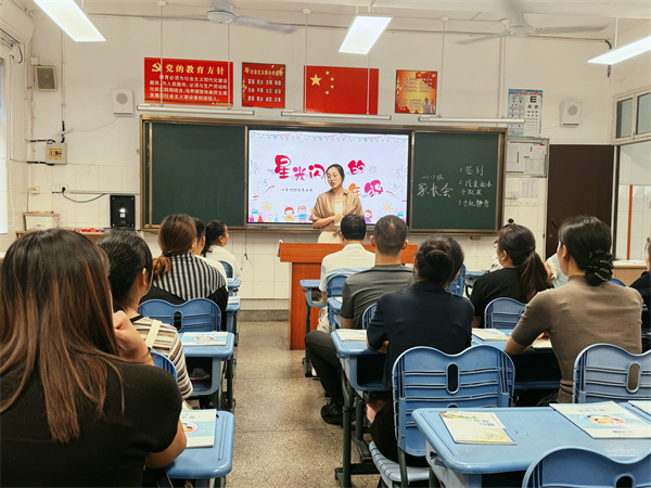 活动伊始,全体家长共同观看《中华人民共和国家庭教育促进法》《中华人民共和国未成年人保护法》等相关法治宣传视频。通过直观生动的讲解,家长们进一步明晰了家庭教育的法定责任与科学方向,为护航孩子成长筑牢法治基础。王菽霞老师以《创设良好的家庭环境 促进儿童的健康成长》为主题进行讲座,她老师从“建立积极和谐的家庭氛围”“建立完善的家庭规则”“充分利用各类家庭教育资源”三个维度,结合理论与实践案例,为家长们送上了实用的育儿方法与衔接技巧。讲座尾声,曾校长以《家校共育 让成长看得见》为题作总结发言。他从“学校篇”“教师篇”“展望篇”展开,全面介绍学校概况、师资力量、课程设置、教学成果等内容,直观呈现校园育人特色与活力。曾校长真诚呼吁家长信任支持学校工作,加强沟通协作,凝聚家校合力,为孩子们的成长筑牢坚实基础。活动最后,家长们前往孩子所在班级参加家长会。各班班主任与各科教师聚焦学科特点、学生现状及班级管理细节,与家长们开展面对面、心贴心的深度交流。会后,家长们纷纷分享心得,字里行间满是对学校与老师的感谢,更传递出共育孩子的坚定信心。