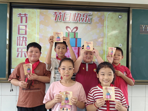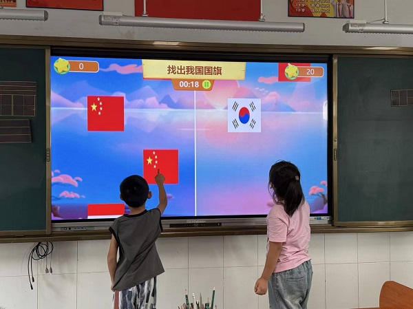 班队课上,各中队化身“双节欢乐小天地”。孩子们动手体验乐趣十足:裁红纸、画五星,小心翼翼制作迷你国旗,稚嫩的笑脸上满是自豪;揉黏土、捏造型,软萌可爱的“月饼”在指尖诞生,每一处细节都藏着对团圆的期盼,教室里满是欢声笑语与温情。