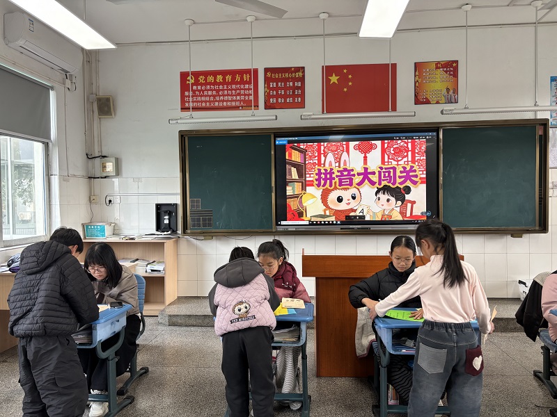 活动开始前,各班教室早已布置妥当。“拼音闯关”几个大字赫然出现在黑板屏幕上。一年级的学生,小身板坐得笔直,他们悄悄攥紧了小拳头,眼神里是跃跃欲试的期待!
